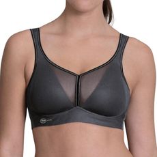 De Air Control DeltaPad sport BH van Anita Active is uitgevoerd in de kleur Viper Grey. De BH is voorzien van een print en groene details. De trianglevormige schuimcups garanderen een permanente luchtcirculatie door de ademende pads met openingen aan de zij- en onderkant. De binnenkant van de cups en de omvangsband zijn gemaakt van een zeer zachte en comfortabele stof, waardoor het niet zal gaan schuren.