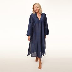 “Een kaftan moet licht aanvoelen en moeiteloos vallen. Deze versie beweegt prachtig mee en laat net genoeg van je swimwear zien. Door het materiaal voelt hij erg zacht en luchtig op een zomerse stranddag. Het is zo’n item dat je aantrekt en meteen een elegante uitstraling geeft.”