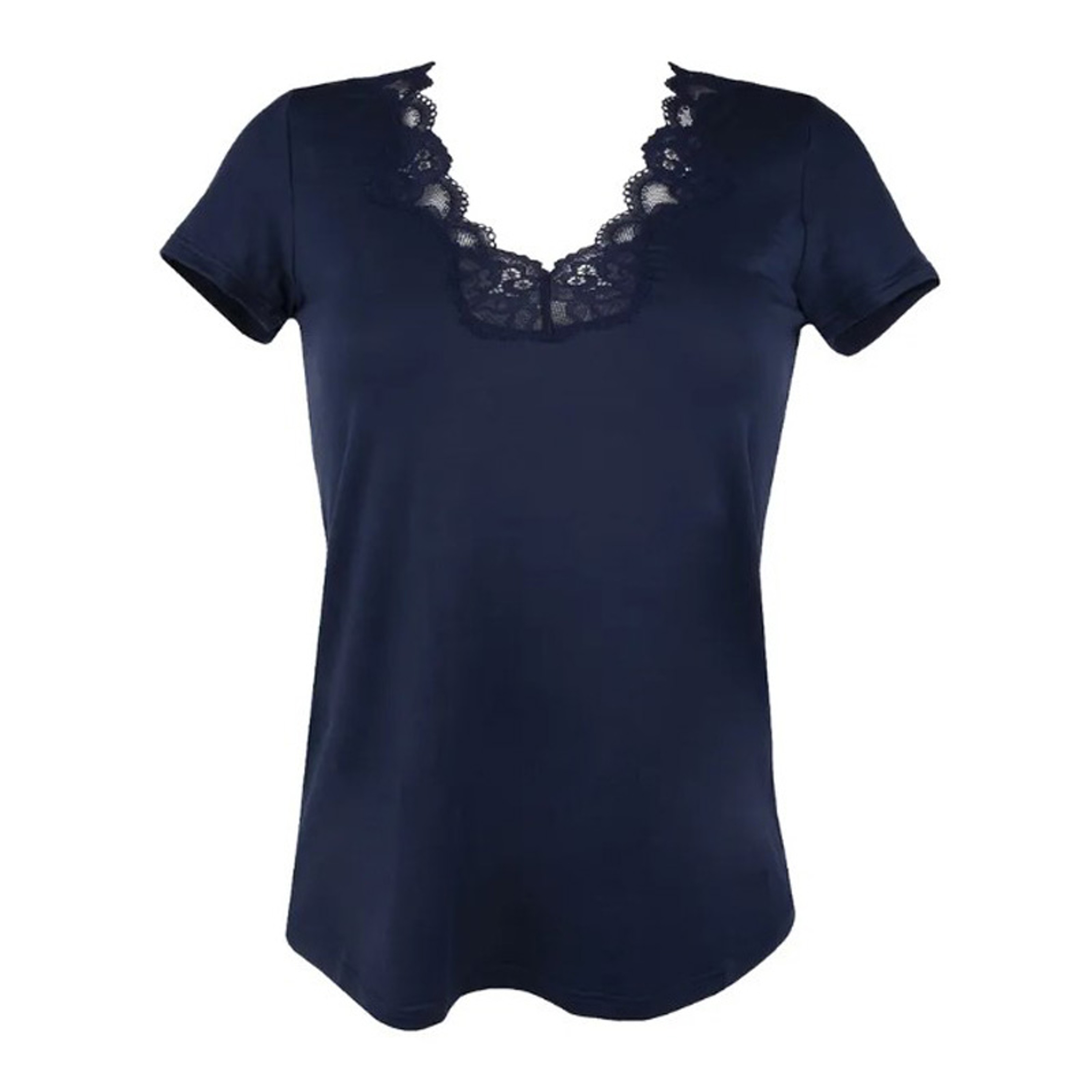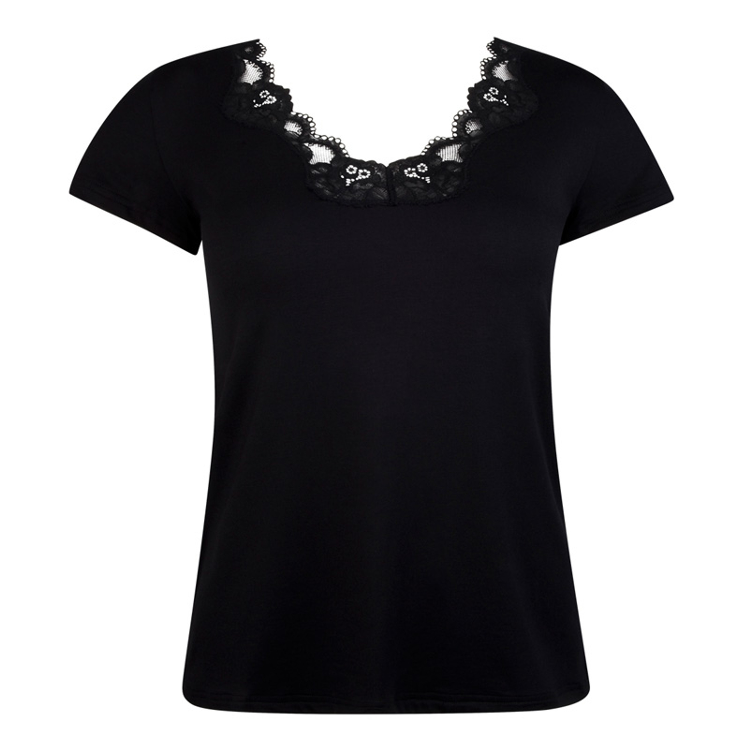 Het Simply Perfect T-shirt van Antigel is uitgevoerd in de kleur Chine Gris. Dit grijze shirt is gemaakt van modal en voelt zacht aan op de huid. Dankzij de comfortabele en soepele stof is dit T-shirt heerlijk om in te slapen. Het shirt heeft korte mouwen en is rond de hals versierd met prachtig kant.