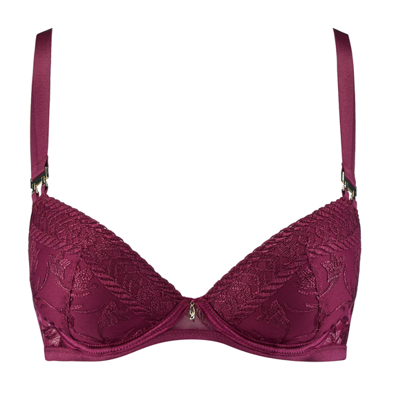 De Magnetic Spell voorgevormde plunge BH van Aubade is uitgevoerd in de kleur Crimson Red. Deze rode BH is volledig versierd met een verfijnde bloemenbroderie, super sexy. e voorgevormde cups zorgen dat de borsten een mooie ronde vorm krijgen en gecentreerd worden. Tussen de cups zit een gouden detail. De dubbele bandjes zijn vastgemaakt met een leuke clip. Combineer deze prachtige BH met een van de slips uit de Magnetic Spell collectie.