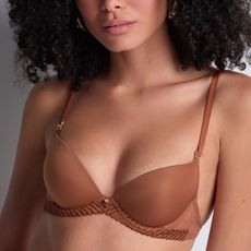 De Sheer Emotion push-up BH van Aubade is uitgevoerd in de kleur Sand. Deze beige BH omhult je met verfijnde transparantie en delicate stoffen die zorgen voor een verleidelijke uitstraling. Door de lichte tule krijgt de BH een sensuele touch. De BH heeft diep uitgesneden voorgevormde cups die de borsten een mooie lift geven. De gehaakte broderie maakt de BH af. Combineer deze BH met een van de bijpassende slips.