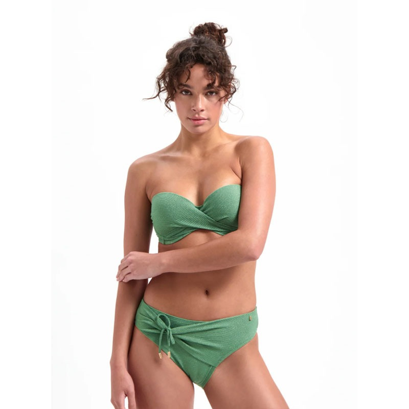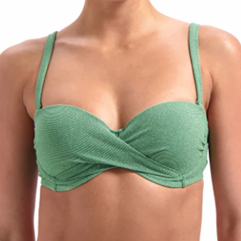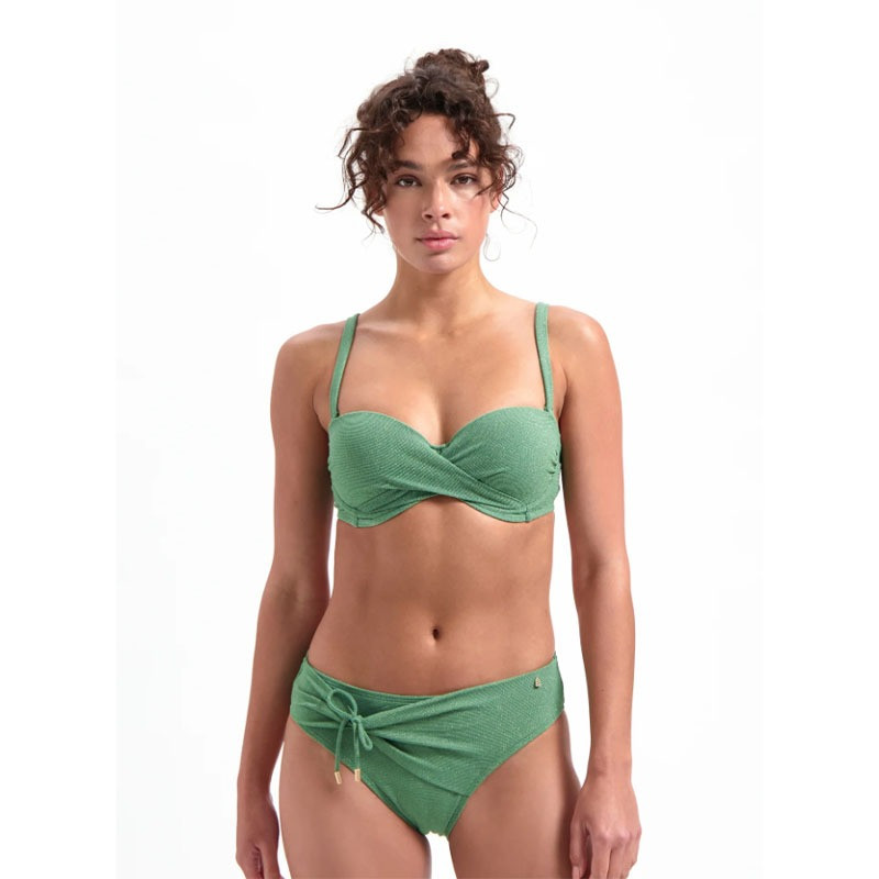 Het Green Shimmer overslag badpak van Beachlife is uitgevoerd in een groene kleur. Zacht groen met een lichte sprankeling voor een natuurlijke shine. Dit trendy badpak heeft een lichte padding in de cups waardoor de borsten een mooie ronde vorm krijgen. Het twistdetail aan de voorkant zorgt voor een mooi decolleté. De schouderbandjes zijn recht, gekruist en als halter te dragen. Combineer dit badpak met jouw favoriete strandaccessoires van Beachlife.