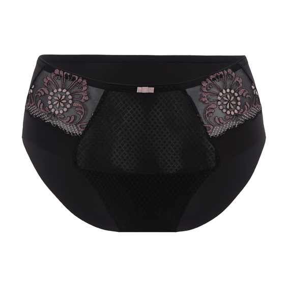 De Festival Tailleslip van Conturelle is uitgevoerd in de kleur Black. De voorzijde van de tailleslip is versierd met een prachtige bloemenbroderie in een zwarte kleur, net als op de BH. De achterkant van de slip is effen zwart. De slip bedekt de billen gedeeltelijk. De hoge taille zorgt er voor dat je buik mooi bedekt wordt. De slip is afgewerkt met een strikje. Combineer de tailleslip met de bijpassende Festival beugel BH!