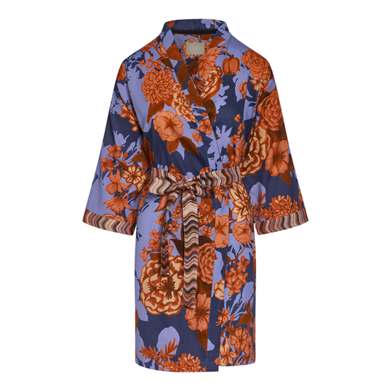 De Sarai Flore kimono van Essenza is uitgevoerd in de kleur Boyish Blue. Deze super comfortabele kimono is voorzien van een prachtige chique bloemenprint. De katoenen stof van deze fijne kimono is heerlijk luchtig en ademend en draagt zacht op de huid. De kimono met driekwartsmouwen sluit met een strikceintuur. Combineer deze kimono met de bijpassende pyjamabroek voor een complete look.