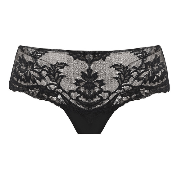 De Bronte string van Fantasie is uitgevoerd in de kleur Black. Deze verleidelijke string is versierd met zwarte borduurwerken op een donkergrijze ondergrond. Gedeeltes van de string zijn doorschijnend, wat zorgt voor een sexy uitstraling.