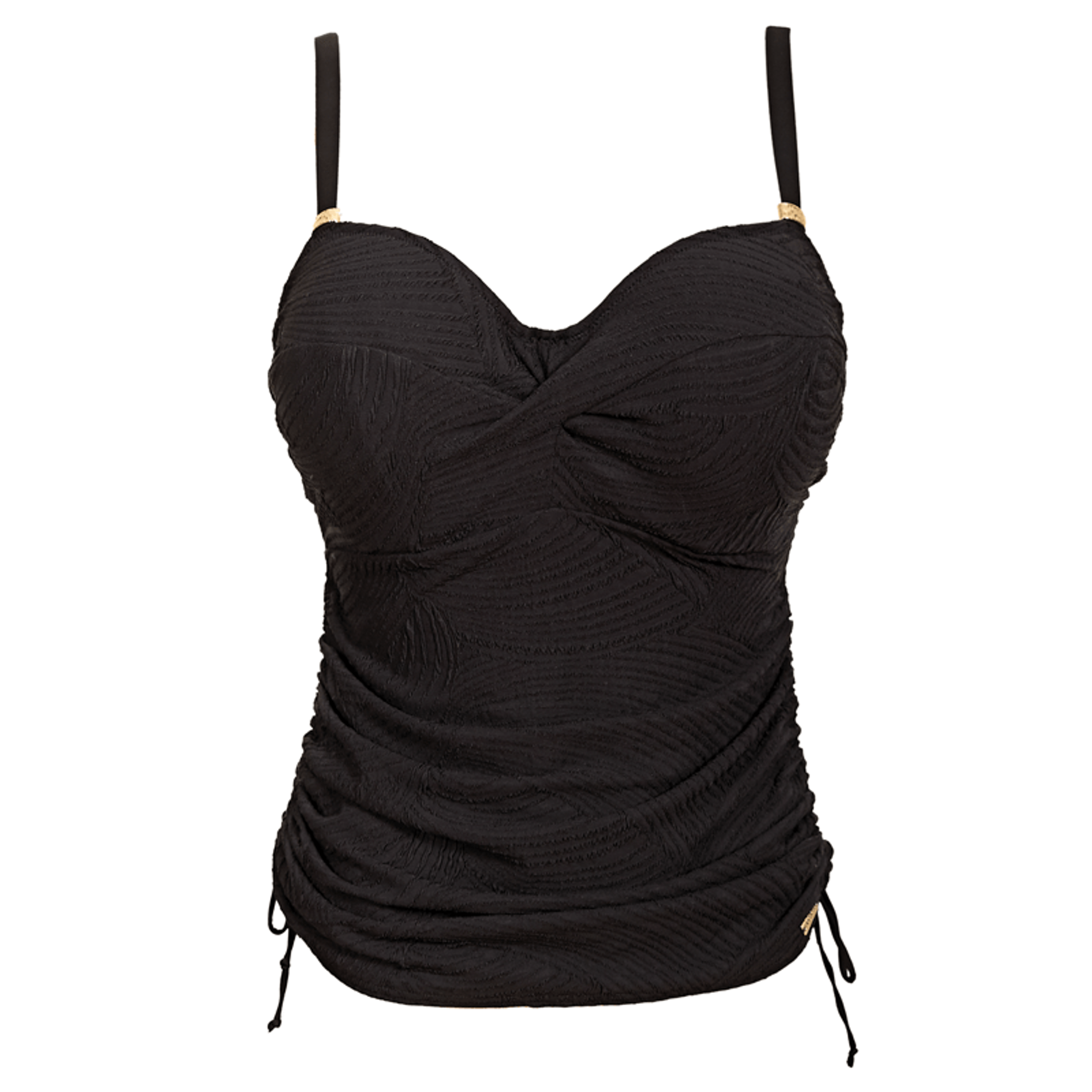 De Ottawa tankinitop van Fantasie Swim is uitgevoerd in de kleur Pacific. In de stof van deze stijlvolle top zijn mooie patronen verwerkt. Beide schouderbandjes van deze top zijn afgewerkt met een zilveren detail. In het midden zit een speelse twist verwerkt. De tankinitop is gemaakt van een fijne stretchstof waardoor deze erg comfortabel zit.