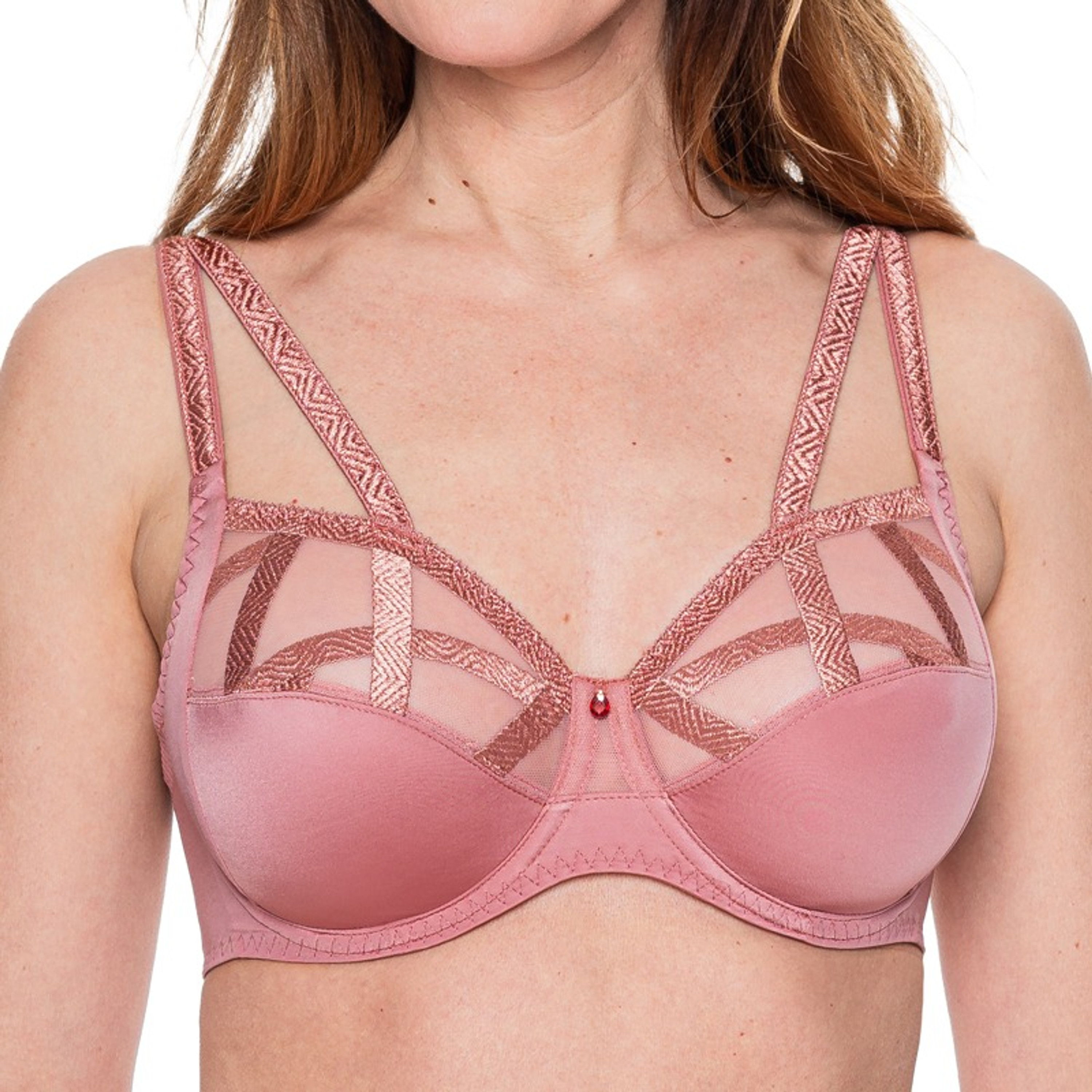 De Série beugel BH van Louisa Bracq is uitgevoerd in de kleur Noir, een tijdloze zwarte tint met een verleidelijke uitstraling. Deze volle cup BH is versierd met moderne geometrische borduursels op transparante tule, die de huid subtiel blootlegt voor een elegante en sensuele look. De brede, rekbare schouderbanden zorgen voor een comfortabele pasvorm en optimale ondersteuning. Een klein sierlijk juweel tussen de cups voegt een verfijnde touch toe. De achterkant is bekleed met zachte tonische tule en afgewerkt met ademend polyamidegaas voor ultiem draagcomfort. Dankzij de expertise van Louisa Bracq in grotere cupmaten combineert deze BH een perfecte pasvorm met stijlvolle verleiding.