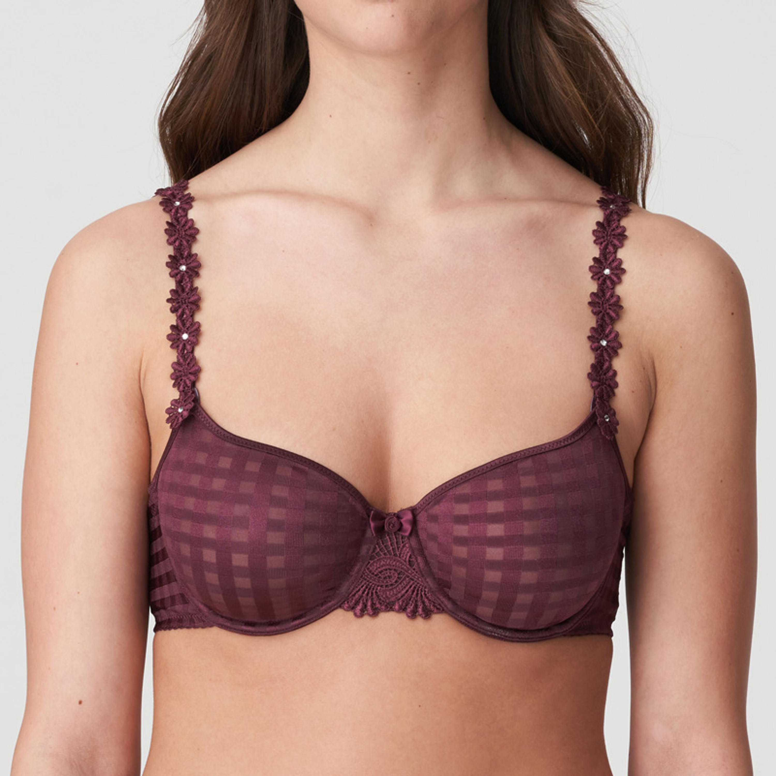 De Avero beugel BH van Marie Jo is uitgevoerd in de kleur Ivory Petal. Deze ivoorkleurige BH is voorzien van een trendy ruitjesprint met een glanzende afwerking. De zachte cups liften de boezem en geven de borsten een natuurlijke ronde vorm. Door de naadloze afwerking draagt de BH onzichtbaar onder je kleding. De sierlijke schouderbandjes bestaan uit kleine madeliefjes met gele highlights en zijn recht, kruislings of als halter te dragen. Het madeliefje tussen de cups maakt deze BH af. Combineer deze BH met een van de bijpassende slips.