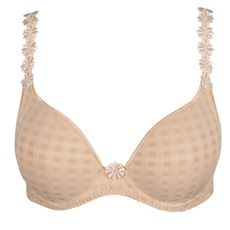 De Avero hartvorm BH van Marie Jo is uitgevoerd in de kleur Powder Rose. Deze lichtroze BH is voorzien van een trendy ruitjesprint met een glanzende afwerking. De voorgevormde cups lopen aan de bovenkant iets terug en geven de borsten een mooie ronde vorm. Door de naadloze afwerking draagt de BH onzichtbaar onder je kleding. De sierlijke schouderbandjes bestaan uit kleine madeliefjes en een spaghettibandje. De madeliefjes tussen de cups maken deze BH af. Combineer deze BH met een van de bijpassende slips.