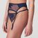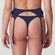De Etoile string van Marie Jo is uitgevoerd in de kleur Sapphire Blue. Deze blauwe string maakt een comeback uit de eighties! De transparante tule is versierd met een abstract bladmotief en geeft de string ultieme retro vibes. Door de lichtdoorschijnende materialen is de huid zichtbaar. De string is aan de achterkant effen en niet doorschijnend. Aan de zijkanten van de string zijn schattige kraaltjes toegevoegd. Combineer deze string met een van de bijpassende BH's.