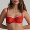 De Jhana balconette BH van Marie Jo is uitgevoerd in de kleur Fiesta Red. Deze rode BH heeft stevige tule cups, versierd met Franse broderie en met grafische patronen. Door de lichtdoorschijnende materialen schemert de huid door, super sexy! De tule cups liften en centreren de boezem voor een verleidelijk decolleté. Tussen de cups en aan de schouderbandjes zijn gouden ringetjes bevestigd. Combineer deze BH met een van de bijpassende slips. Ga voor een uitdagende én fashionable look met de Jhana collectie.