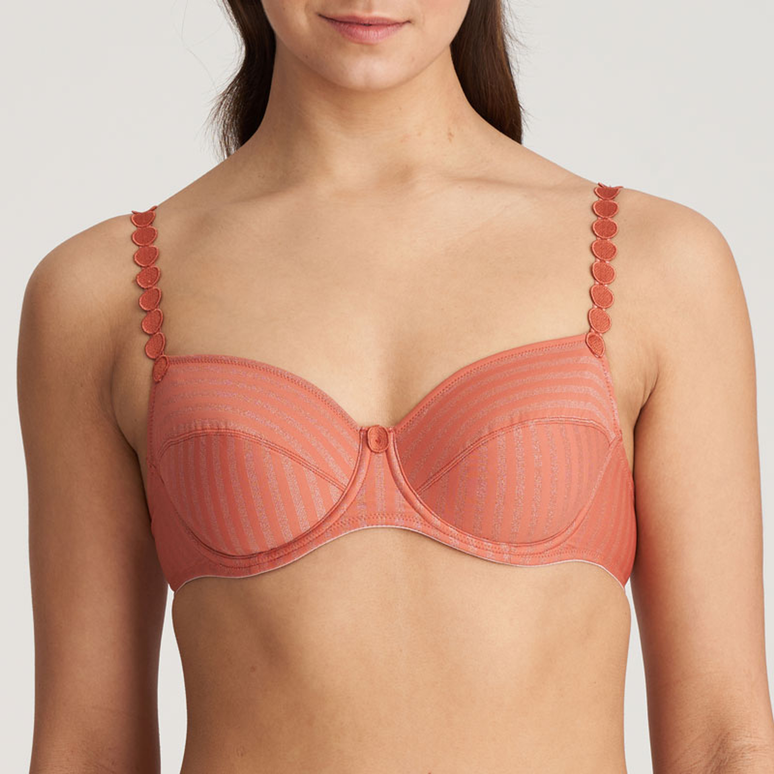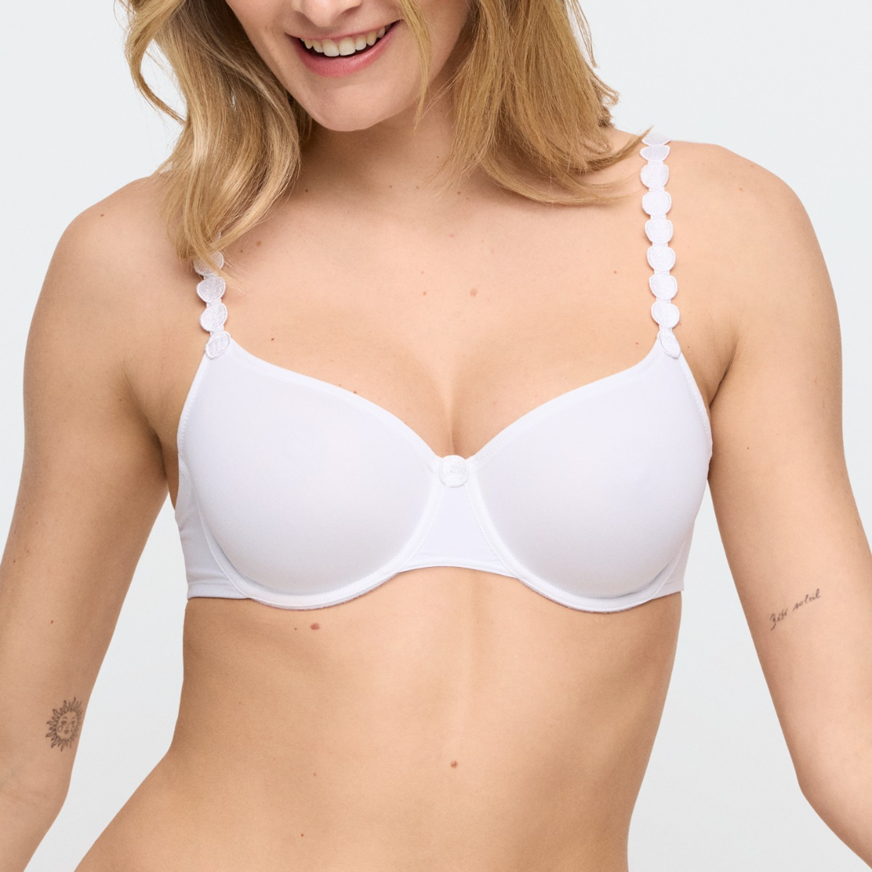 De Tom naadloze beugel BH van Marie Jo is uitgevoerd in de kleur Charbon. Deze grijze BH heeft zachte naadloze (niet voorgevormde) cups, waardoor de BH onzichtbaar draagt onder je kleding. De cups bedekken een vrij groot gedeelte van de borsten en geven een mooie lifting. Deze BH is geschikt voor vrouwen met een grotere cupmaat en biedt voldoende steun voor de stevigere borst. De schouderbandjes maken deze BH uniek door het rondjespatroon. Maak je setje compleet met een van de bijpassende slips uit de Tom collectie.