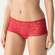 Deze elegante slip is gemaakt van een glanzend satijnstofje, waarbij de voorkant is afgewerkt met prachtig kant. De rioslip valt normaal op de benen en bedekt de billen gedeeltelijk.
