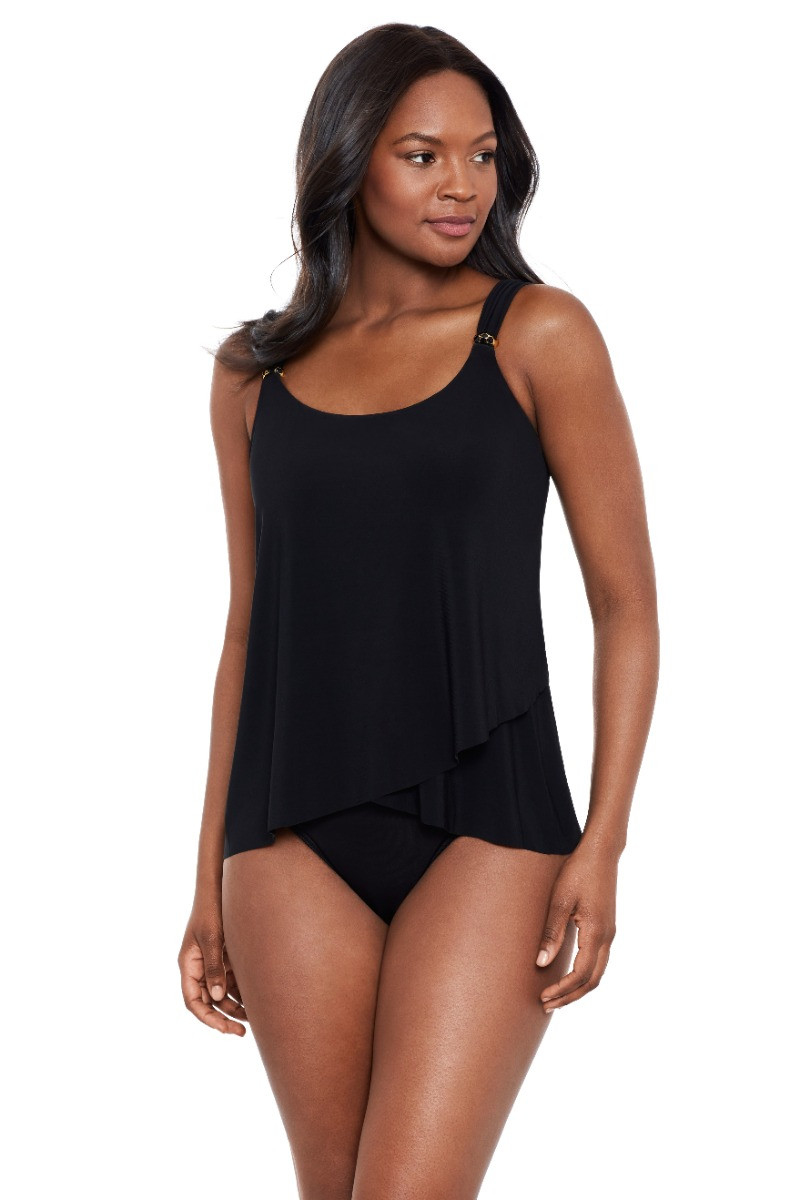 Het Bottom Layered Ruffle Skirt broekje van Miraclesuit is uitgevoerd in de kleur Black en geeft je een prachtig gestroomlijnd silhouet. Dit zwemrokje heeft een ingebouwd broekje dat gemaakt is van corrigerend materiaal dat je figuur elegant vormt. De rok zorgt ervoor dat oneffenheden worden verbloemt, zodat je er zowel zelfverzekerd als stijlvol uitziet. Combineer met een van de bijpassende tankinitops voor een complete set.