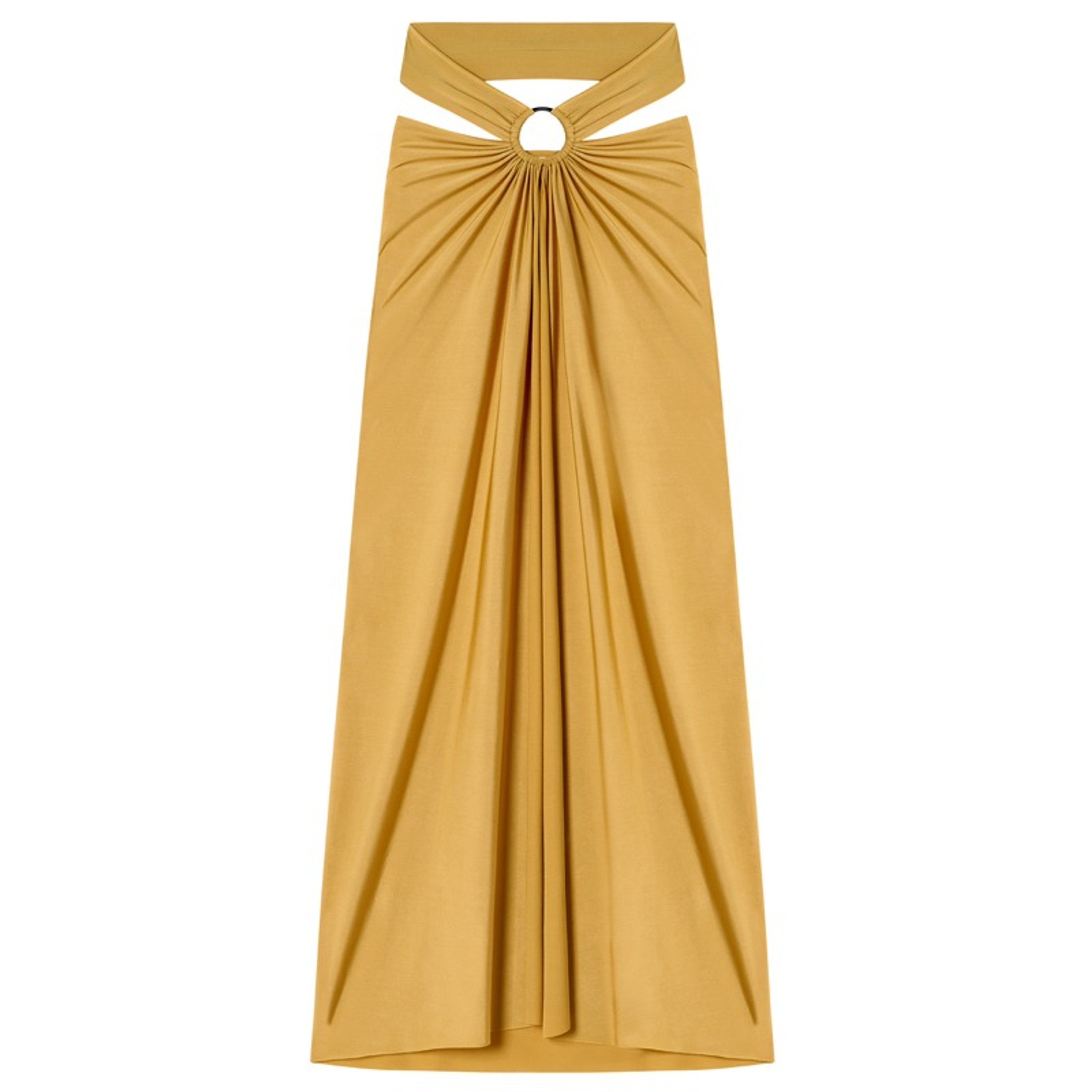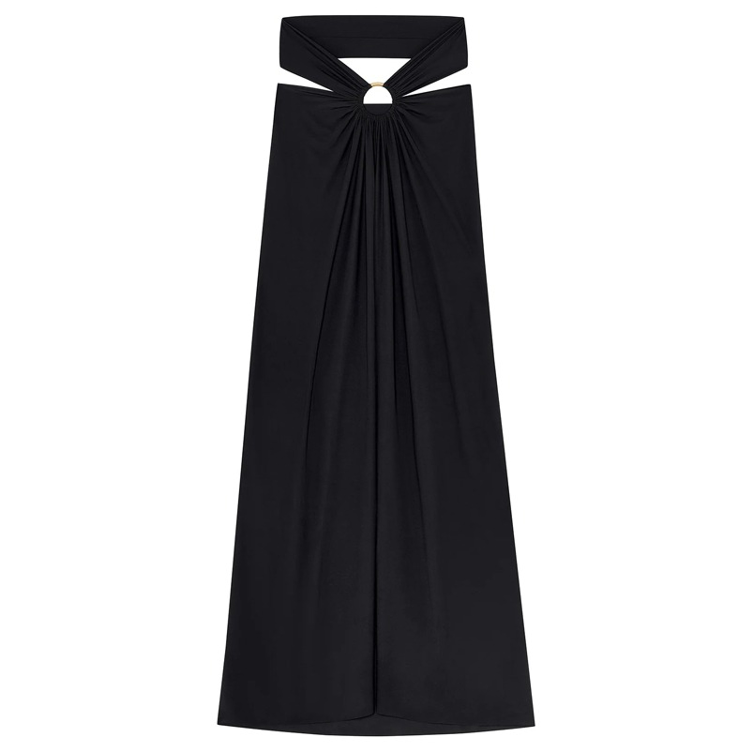 De Petra strandrok van Pain de Sucre is uitgevoerd in de kleur Satine Navy. Deze multipositie pareo-rok is gemaakt van lichte, stretch voile en heeft een open voorkant. Bandjes en een geplooide rok zijn elegant samengebracht rond een grote lus. De Petra strandrok kan op verschillende manieren worden gedragen. Als rok worden de bandjes rond de taille gestrikt, of als strandjurk rond de schouders voor een strapless, vrouwelijke look. De raw-cut afwerkingen en de sieradenlus geven de rok een elegante, veelzijdige uitstraling. Combineer met de bijpassende badmode van Pain de Sucre voor een complete look.