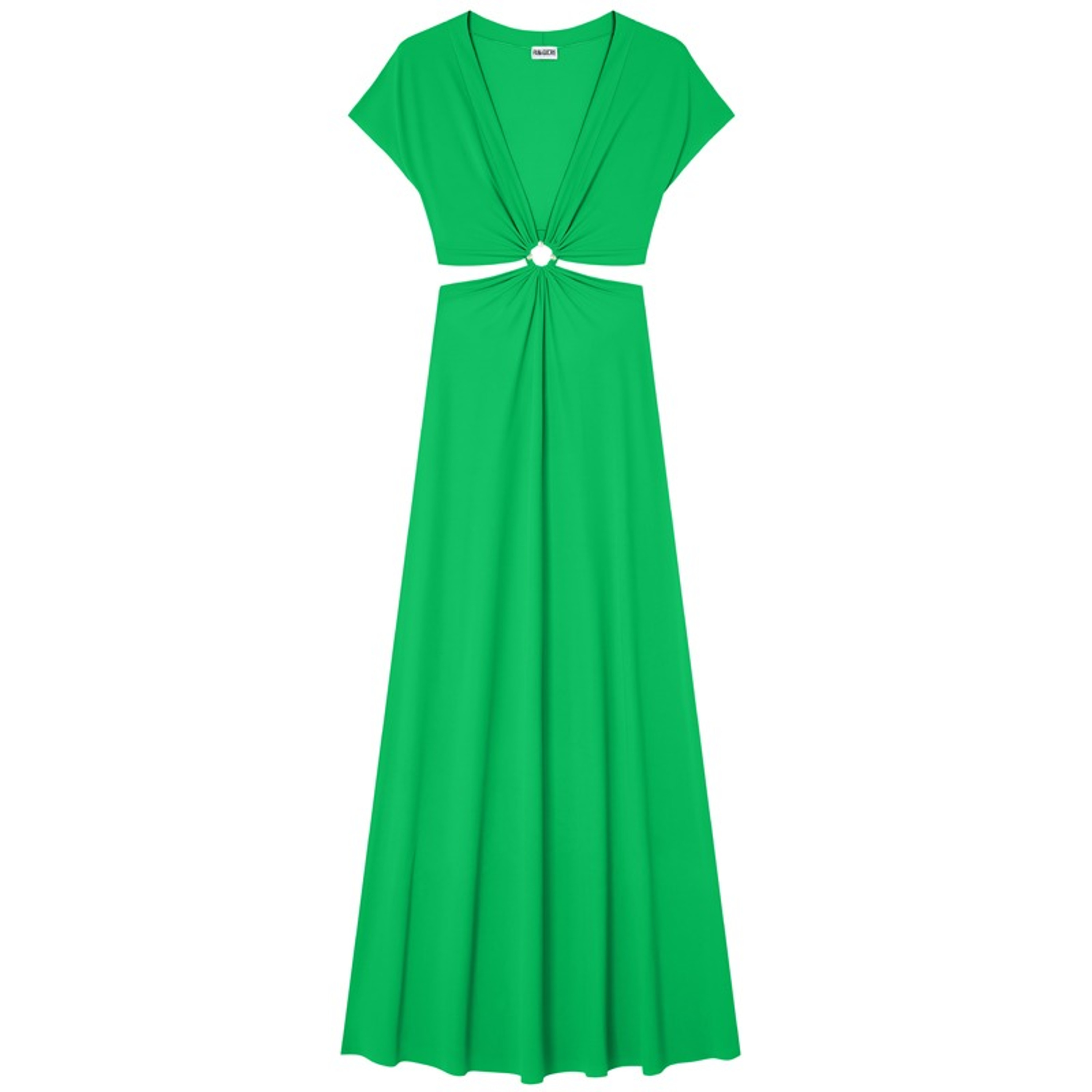 De Rislene strandjurk van Pain de Sucre is uitgevoerd in de kleur Noir. Deze lange, wijd uitlopende jurk is perfect voor op het strand of als luchtige zomerjurk. De jurk heeft een ruime halslijn aan de voorkant en een open rug aan de onderzijde, afgewerkt met drie parelmoeren knopen op de ronde opening onder de borst. Korte mouwen en een vrije snit maken het geheel luchtig en comfortabel. Combineer met de bijpassende badmode van Pain de Sucre voor een complete look.