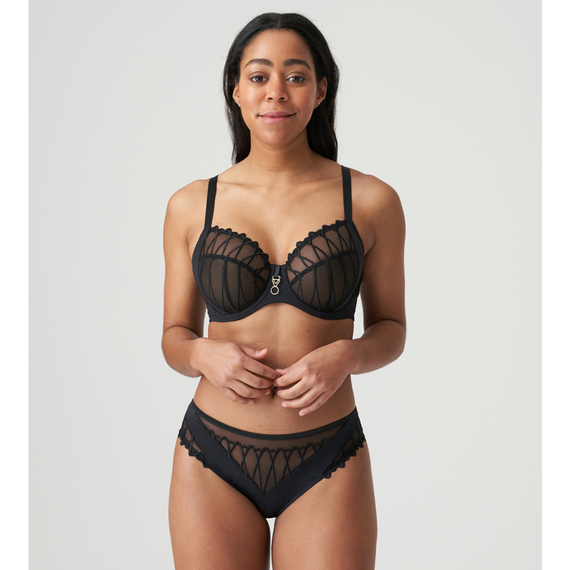 De Arthill Rioslip van PrimaDonna is uitgevoerd in de kleur Black. Deze sexy zwarte slip is versierd met transparant tule en een grafische broderie. Een brede strook satijnlook-stof loopt van het voorpand naar achteren. Op de rug is de slip verleidelijk transparant en voorzien van een schattig detail! De hogere uitsnijding zorgt voor een sensueel silhouet. Combineer deze slip met een van de BH's uit de Arthill serie.