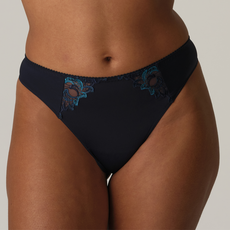 De Deauville string van PrimaDonna is uitgevoerd in de kleur Amethyst Gem. Deze paarse string is bij de zijkanten vrij hoog uitgesneden waardoor je benen langer lijken. De string is gemaakt van glad materiaal en is afgewerkt met hetzelfde luxe kant als de Deauville BH's wat de string zowel comfortabel als elegant maakt. Een subtiel, koperkleurig glittertje en de semi-transparante delen zorgen voor een verleidelijke uitstraling. Combineer de string met één van de bijpassende BH's uit de Deauville collectie voor een complete set.