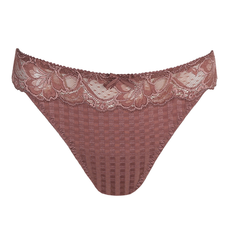 De Madison string van PrimaDonna Lingerie in de kleur Scarlet is vrij hoog uitgesneden aan de zijkanten, waardoor je benen langer lijken. De string is gemaakt van dezelfde ruitjesstof als de BH's en aan de zijkanten afgewerkt met kant. De Madison serie is erg populair onder PrimaDonna fans. De combinatie van ruitjes en kant geeft deze serie een jonge en elegante uitstraling.