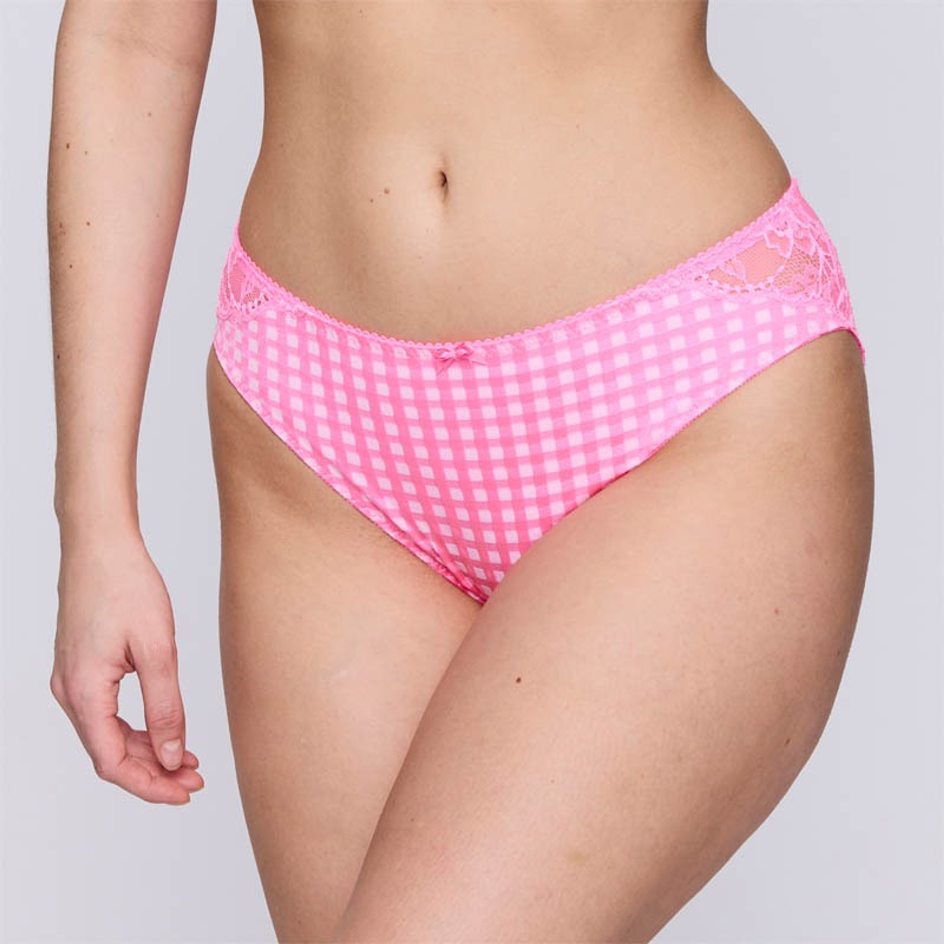De Madison rioslip van Primadonna is uitgevoerd in de kleur Soft Sand. Deze slip is gemaakt van een elegante ruitjesstof en is aan de zijkanten en bij de billen verfijnd afgewerkt met luxe kant. De hoge uitsnijding aan de zijkanten zorgt ervoor dat je benen optisch langer lijken. Combineer deze slip met een van de Madison BH’s.