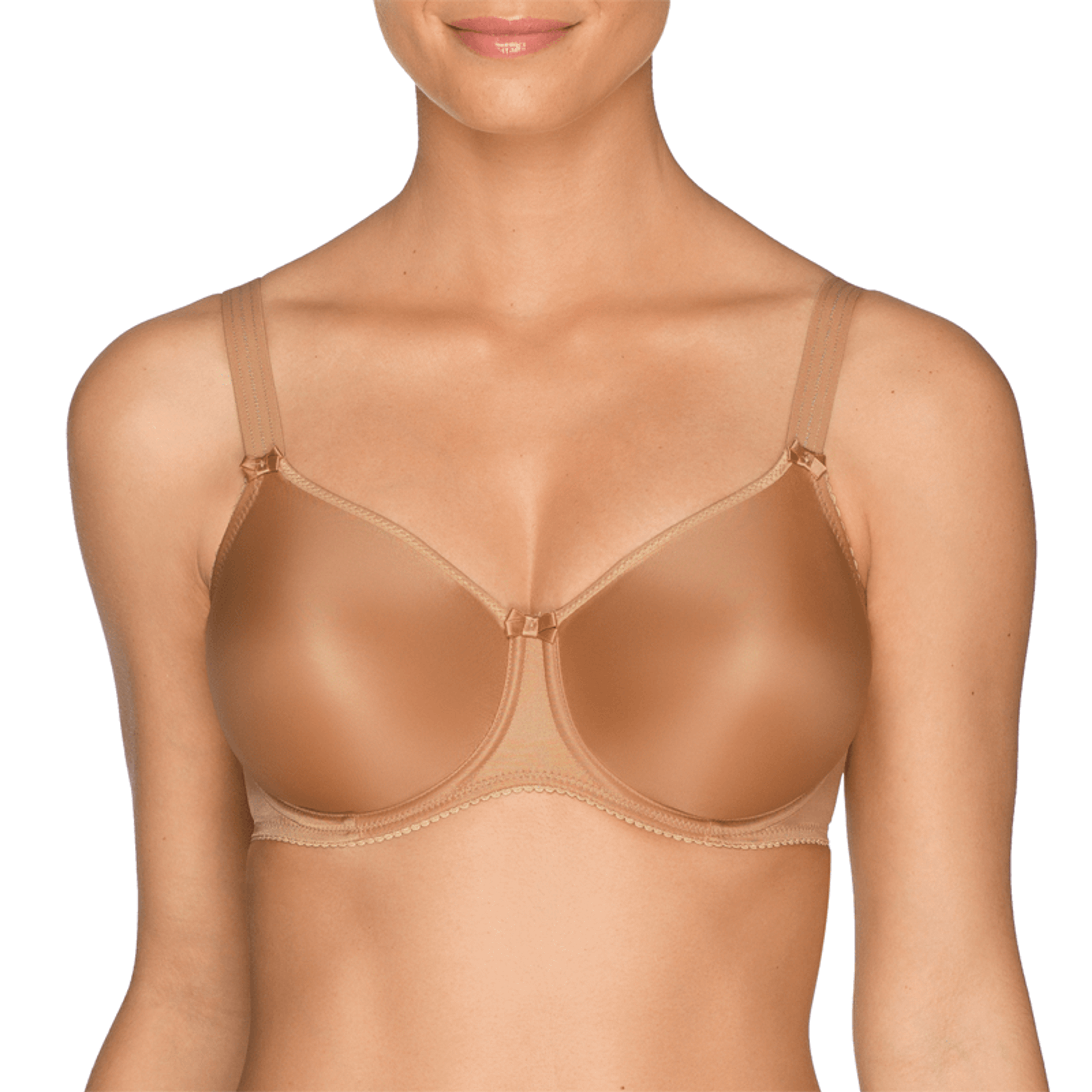 De Satin naadloze beugel BH is uitgevoerd in de kleur Natuur. Deze ivoorkleurige BH heeft naadloze cups die volledig glad zijn afgewerkt. Deze BH ondersteunt en lift de borsten voor een mooie ronde vorm. De BH heeft een subtiel minimizer effect, zonder de borsten plat te drukken. Tussen de cups en op de schouderbandjes zijn schattige strikjes verwerkt.
