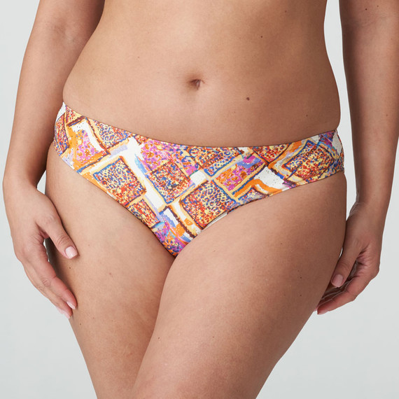 Het Navalato riobroekje van PrimaDonna Swim is uitgevoerd in de kleur Summer Sunset. Ga voor een trendy look deze zomer! Dit meerkleurig bikinibroekje heeft een etnische retroprint met gouden highlights die elegant oplichten in de zomerzon. Het broekje heeft een normale pasvorm. Combineer deze bikinitop met een van de bijpassende bikinibroekjes. Embrace the sunshine!