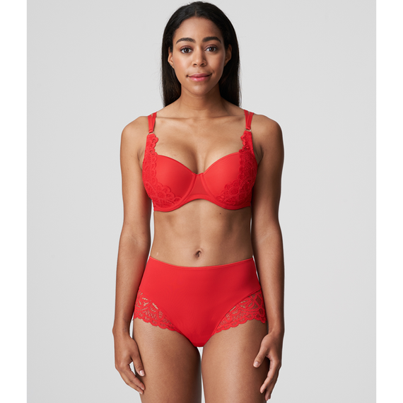 De First Night voorgevormde balconette BH van PrimaDonna Twist is uitgevoerd in de kleur Pomme d'Amour. Deze rode BH is aan de zijkanten van de cups versierd met prachtig kant, dit loopt gedeeltelijk door in de schouderbandjes. De schouderbandjes lopen aan de achterkant over in 2 speelse bandjes en het is mogelijk om deze zowel recht als kruislings te dragen. De achterzijde is gemaakt van een semi-transparante mesh stof, wat zorgt voor een sexy touch! Superverleidelijk én onzichtbaar onder wit: Pomme d'Amour is een vuurrode zomertint.