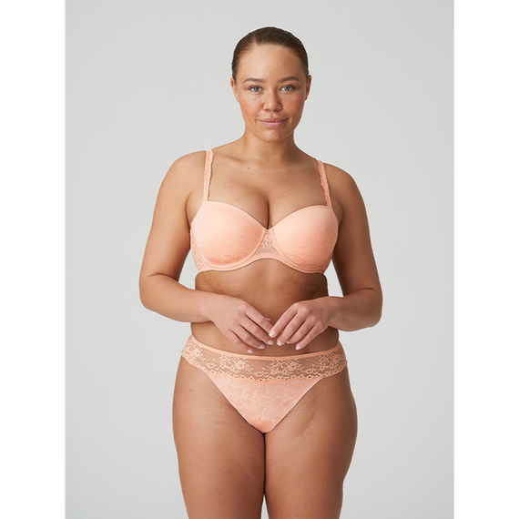De Playa Amor string van PrimaDonna Twist is uitgevoerd in de kleur Silky Dreams. Deze oranje string is gemaakt van een glanzende stof, versierd met mat vintagekant, wat zorgt voor een prachtige diepte en textuur. De boven- en achterkant van de string is lichtdoorschijnend, super sexy! Combineer deze string met een van de bijpassende BH's.