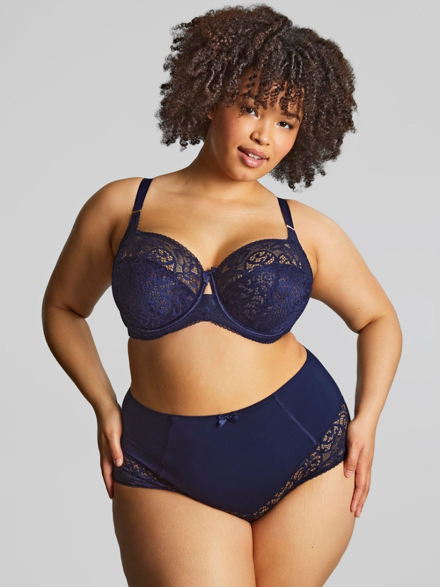 De Estel full cup BH van Sculptresse is uitgevoerd in de kleur Navy. Deze blauwe BH heeft 4-delige cups, gemaakt van romantisch kant. De cups zijn onderin dubbel gevoerd om de buste te liften en te ondersteunen. Door het stevige elastische kant en de brede schouderbandjes is deze BH perfect voor vrouwen met een grote cupmaat. Het sleutelgat tussen de cups zorgt voor een sensuele uitstraling. Combineer deze BH met de bijpassende slip.