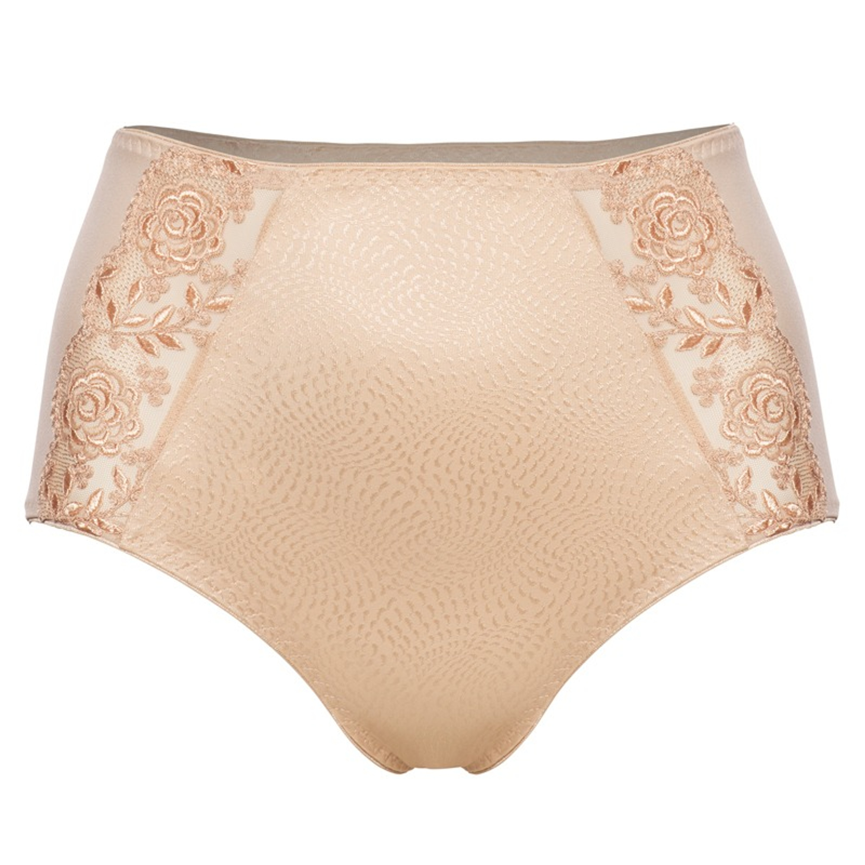 De Ella tailleslip van Ulla is uitgevoerd in de kleur Ecru. Deze ecru kleurige slip is aan de voorkant versierd met tule met bloemenbroderie. De slip heeft een hoge pasvorm en verhult een gedeelte van de buik. De achterkant bedekt de billen volledig. Combineer deze slip met een van de bijpassende BH's.