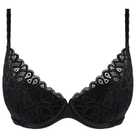 De Raffine push-up BH van Wacoal is uitgevoerd in de kleur Black. Deze zwarte BH heeft een sexy, diep uitgesneden decolleté en is gemaakt van een zachte stof. De vulling in de cups zorgt ervoor dat je borsten worden gelift. Het sierlijke kant op de cups maakt deze BH helemaal af! Maak je setje compleet met een slip uit de Raffine collectie.